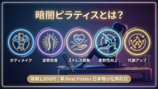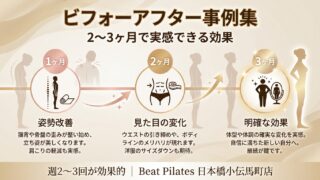 ピラティスで肩こり・腰痛を根本改善する方法を徹底解説。痛みの原因・改善メカニズム・効果実感の期間まで網羅。ビートピラティス日本橋小伝馬町店なら1〜2週間で軽減を実感。初回体験1,000円で痛み知らずの体へ